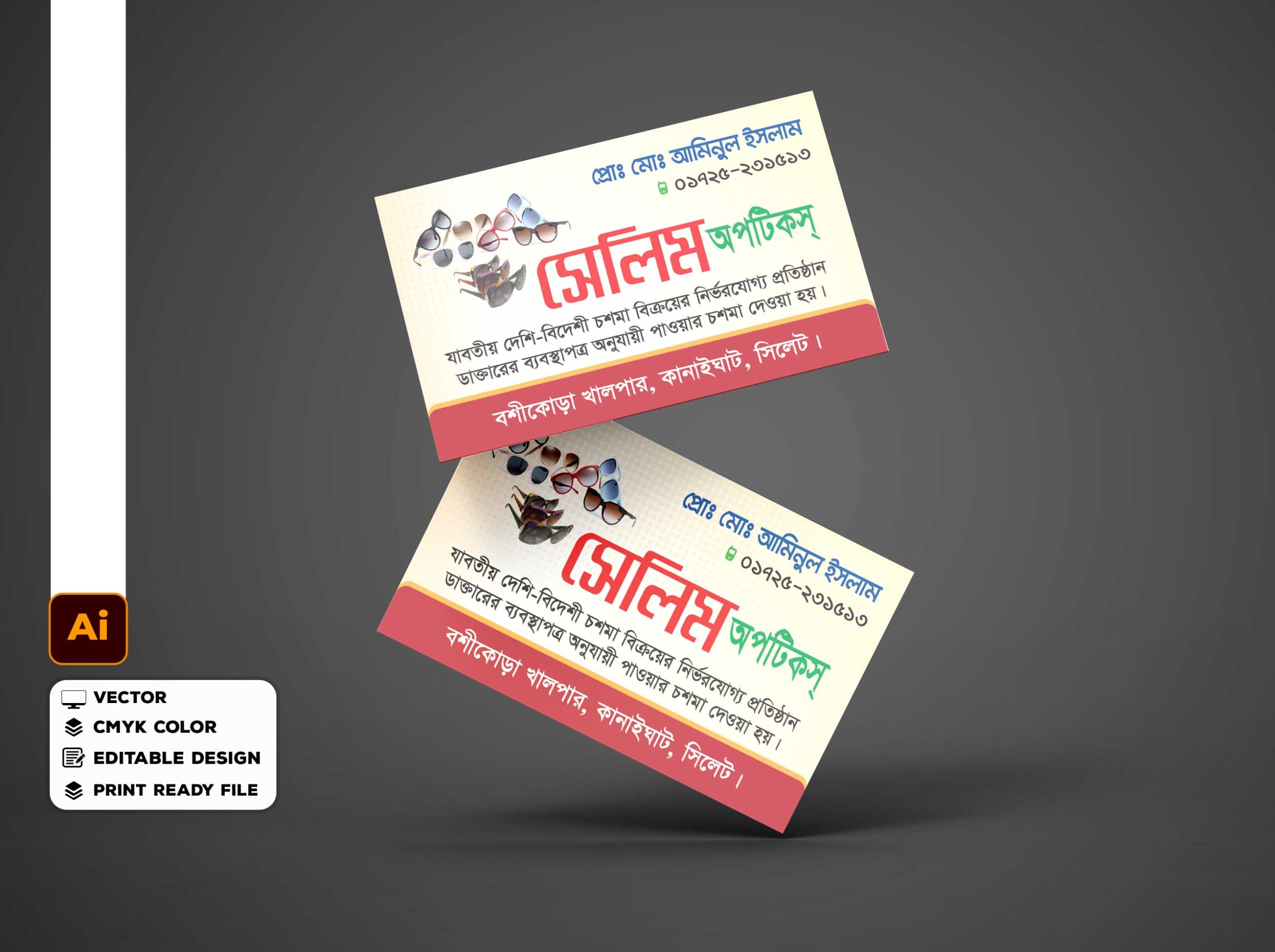 এই ডিজাইনটি “টি এল অপটিকস্ ভিজিটিং কার্ড ডিজাইন-Visiting or Business Card” তৈরি করা হয়েছে গ্রাফিক্স ডিজাইনের জনপ্রিয় ব্যবহারকৃত মাধ্যম Adobe Illustrator দিয়ে। এই ডিজাইনটির ল্যায়ার গুলা সুন্দর করে গ্রুপ ভিত্তিক সাজানো হয়েছে। আপনি খুব সহজে নিজের মতো করে ব্যবহার করতে পারবেন এবং এডিট করতে পারবেন। এছাড়াও আপনি ডিজাইনটি প্রিন্ট করতে পারবেন।