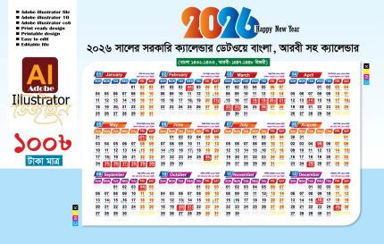 2026 সালের সরকারি ডেটওয়ে ইংরেজি, বাংলা, আরবী ক্যালেন্ডার ডিজাইন 2026 (সরকারি প্রযোজ্য)